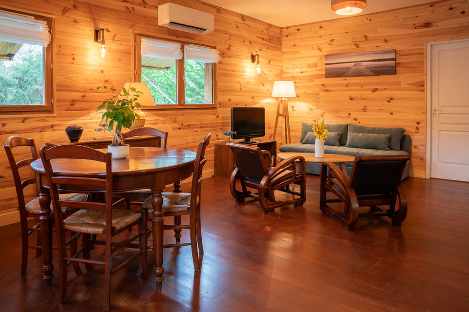 Suspendu sur pilotis, Le Chalet du Courlis est une maison en bois qui respire le confort et l’élégance naturelle. le chalet vous accueille dans une atmosphère chaleureuse et authentique. Avec sa terrasse Sud, vue sur la jardin, sa cuisine équipée, ses 2 chambres confortables (lits en160 et climatisation), une grande pièce à vivre, lumineuse, chaque détail est pensé pour un séjour inoubliable.