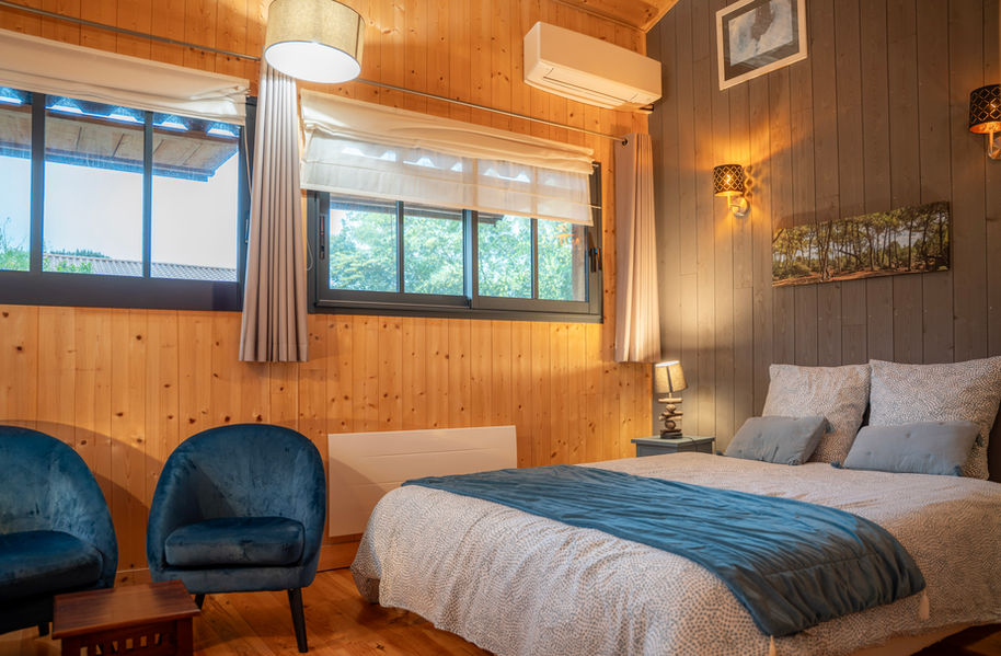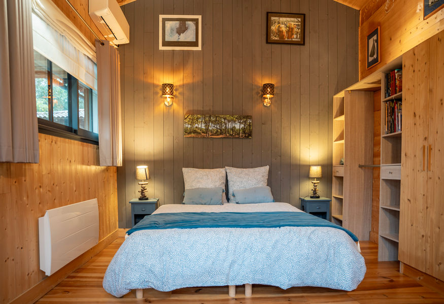 A magnificent wooden cabin, on stilts, moderne and bright. This cabin with its refined design is made for two people to live in for a cocooning week by the ocean.