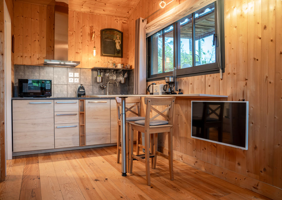 Une magnifique cabane en bois, perchée sur pilotis, moderne et baignée de lumière. Cette cabane au design élégant est conçue pour deux personnes, idéale pour une semaine de détente au bord de l'eau